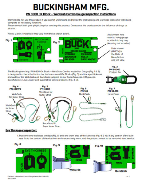 PN 6308 Ox Block Webgrab Combo Gauge Inspection Instructions – 230457