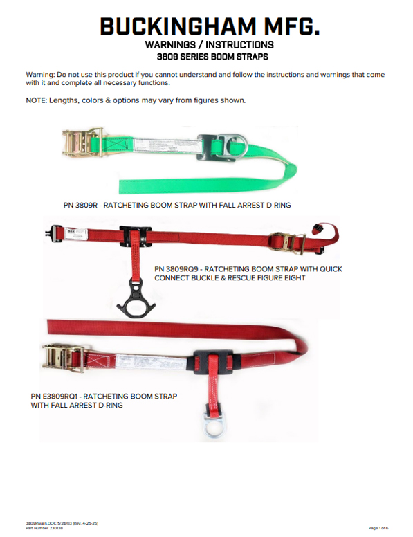 RATCHETING BOOM STRAP (MODEL NO. 3809R) FRICTION BUCKLE BOOM STRAP (MODEL NO. 3809) – 230138 CLICK TO (VIEW/DOWNLOAD))